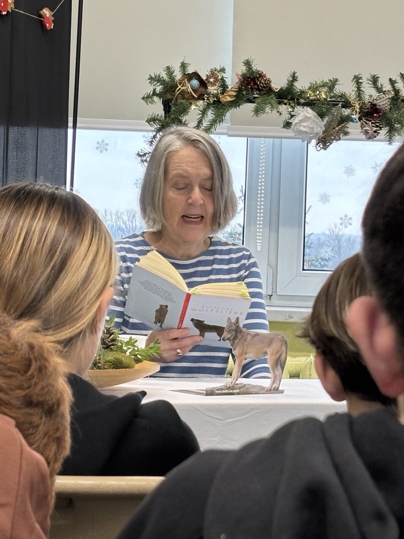 Für die Klassen 5a/b und 6b las die Theaterregisseurin, Rike Reiniger, aus ihrem spannenden Buch „Wolfsliebe“. Im Anschluss hatten die Kinder die Gelegenheit, mit der Autorin über die Figuren, die Handlung und den Entstehungsprozess des Buches ins Gespräch zu kommen. Die Schülerinnen und Schüler nutzten die Möglichkeit, viele Fragen zu stellen und zeigten großes Interesse an den Hintergründen des Werkes.