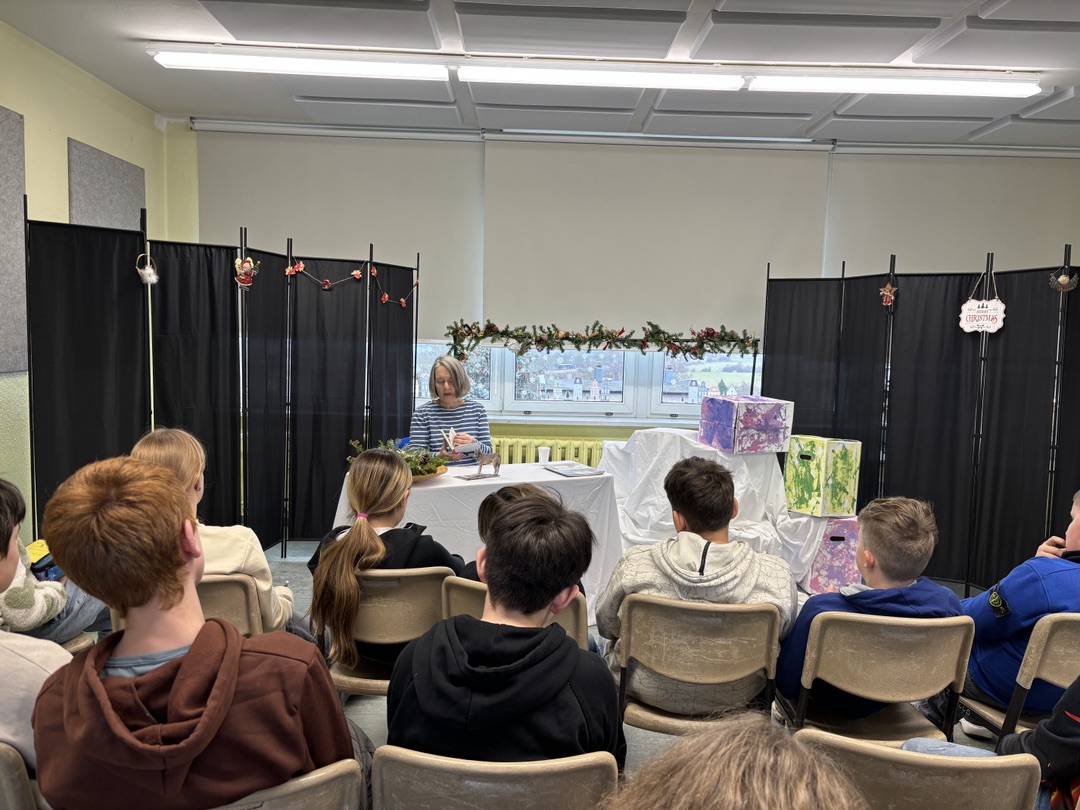 Am 03.12. sowie am 05.12. durften unsere Schülerinnen und Schüler der Klassen 5a/b, 6b sowie 8a/b eine besondere Form des Literaturunterrichts erleben: Frau Schunk organisierte einen Besuch von der Autorin Rike Reiniger.